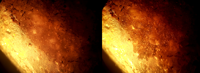 | Under transmitted light, thick Curve Bands and Gas Bubbles were evident after psuedo polishing by water drops. |